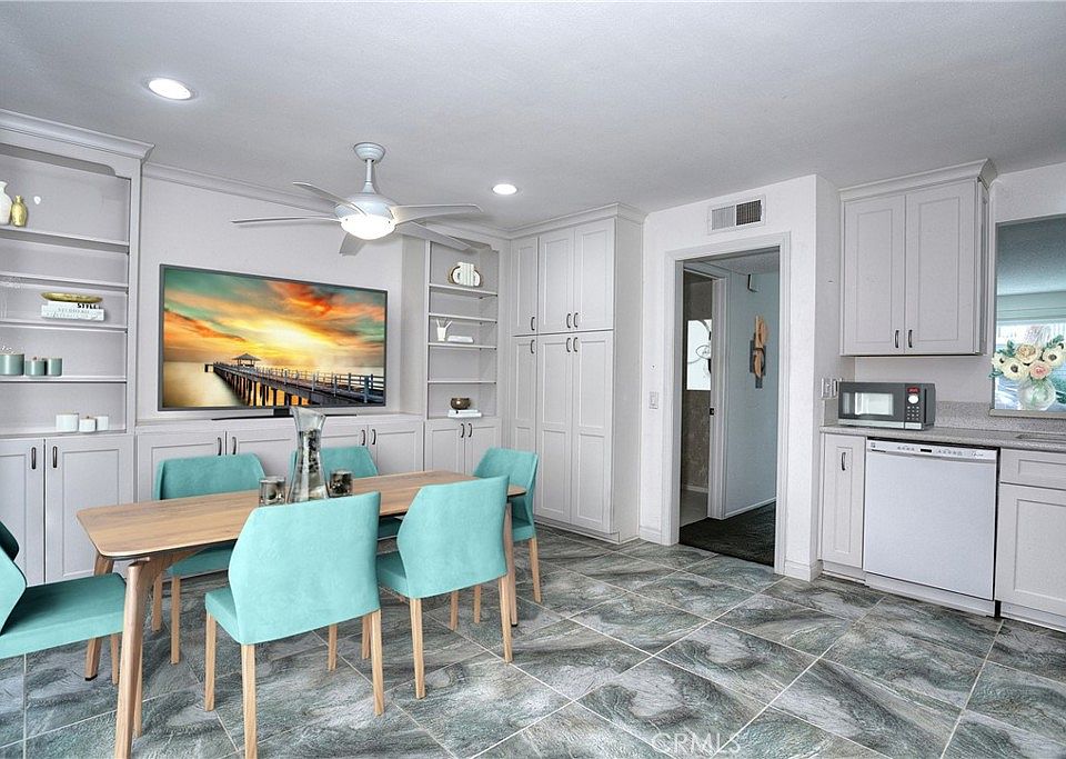 A rare Serrano Woods townhome with a fabulous tranquil view of Serrano Creek Park Trail. Remodeled from the ground up and a perfect first-time owner purchase or investment opportunity. Updated to modern architecture with new cabinets in the kitchen and baths. Open large kitchen family room has custom built-in bookcases and shelves. Lots of cabinets in the open kitchen with room for a dinette set. Lazy Susan cabinet storage in the kitchen is just an added feature of the upgraded home. Spacious master bedroom with ceiling fan lamp and large walk-in closet has a pastoral view of the wooded ravine behind the complex providing privacy. Raised panel doors throughout and recessed lighting and fan lamps also newer double pane windows are a convenient upgrade to this move-ready home. Updated ceramic tiled floors and newer plush carpet installed. Convenient upstairs washer and dryer closet with the appliances included with this home as well as the refrigerator in the kitchen. Enjoy the Sun and Sail Club just step away! This quiet community is a splendor in Lake Forest where very few come on the market. Pride of ownership here and just waiting for you to call it home. New paint, newer roofs, and resealed paving have been recent improvements to the community over the years. Also quick easy access to the 405 & 5 Freeways and Spectrum Shopping Mall in Irvine. Please note photos are virtual staging images.