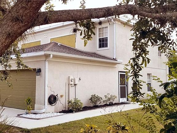 Wonderful 3 bedroom 2 1/2 bath 2 car garage townhouse, light bright and airy. The open floor plan features a breakfast bar with living/dining and kitchen combo downstairs along with a powder room. New wood laminate flooring throughout the downstairs with tile in the powder room. The bedrooms are upstairs with another full bath, the master bedroom with a walk-in closet and a nice size master bath. One of the bedrooms is set up as an office where the desk and chair are staying. The corner cabinet in the master bedroom is also staying. French doors off the kitchen lead to a screened lanai with new carpet. There is a very large backyard with PVC fencing on the sides and a wood fence on the back. Privacy abounds with nothing behind you but trees. You will love entertaining under the new Pergola with an adjustable sun screen over pavers. Owner also added new eaves/downspouts and additional R19 insulation in the attic and over the garage. The community features 2 playgrounds. Great location close to I75 for quick commute. No CDD and low HOA fees. Don't wait! You will be amazed at the value of this unit. HOA does not allow rentals in this community.