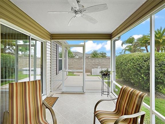 3-Bedroom, 2-Bathroom At Ease Model in the central Village of Tamarind Grove between Lake Sumter Landing & Brownwood Paddock Square. Enjoy RARE PRIVACY with NO REAR NEIGHBORS and NO KISSING LANAI (courtyard wall along the rear property line). Quiet CUL-DE-SAC Street just steps to the neighborhood pool, and a short golf cart ride to countless golf courses & recreation centers. The OPEN CONCEPT floor plan has VAULTED CEILINGS with several upgrades, including LAMINATE FLOORING in the Living Area & Custom Trim (Windows, Mirrors, Cabinets). The EAT-IN KITCHEN features Solid Wood Cabinets, Backsplash, & Island with Breakfast Bar. The large Master Bedroom has a HUGE Walk-In Closet with Extra Shelving, and En Suite Bathroom with Double Sinks & WALK-IN SHOWER with Upgraded Glass Door. Both Bedrooms 2 & 3 have Double Closets, and Bedroom 2 has Vaulted Ceiling. The Guest Bathroom features Volume Ceiling, Shower/Tub Combo, & Linen Closet. INSIDE LAUNDRY ROOM with storages space. Spacious 2-CAR GARAGE with shelving. The 10x15 Lanai is Screened with an additional 10x12 Patio for grilling and/or outdoor seating, fire pit, you name it! Updated, Low-Maintenance Landscaping, Rain Gutters, and PRIVATE BACKYARD with Meyer Lemon Tree. Conveniently Located between 466 and 466A. Close to Lake Sumter Landing, Brownwood Paddock Square, Shopping & Dining at Pinellas Plaza and Colony Plaza, Lake Miona Regional Recreation Center, Seabreeze Regional Recreation Center, numerous Country Clubs (Cane Garden, Bonifay, Evans Prairie, Havana, Palmer Legends), dozens of Executive Golf Courses, Shopping, Restaurants, and More. PLEASE WATCH OUR WALKTHROUGH VIDEO OF THIS COZY 3-BEDROOM COTTAGE IN A GREAT LOCATION! * Please Note: Microwave, Washer & Dryer have been upgraded since photos and video were taken. *