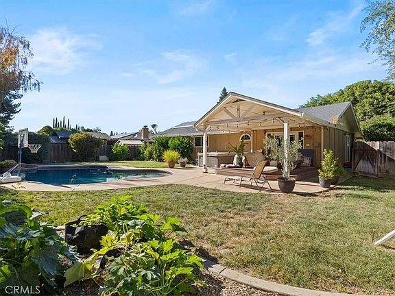 Let Your Home Dreams Come True! This stunning 3 bedroom, 2 bath home has it all! You are greeted with a private courtyard before entering this special home featuring an open kitchen, dining and living room floor plan. You will find custom granite counters in the kitchen and baths, stainless appliances including an oven and microwave, a 5 burner gas cooktop, a wine refrigerator, and a trash compactor. There is abundant storage with an island, a pantry, and an eating bar. Great views and access to the stunning yard with doors from the dining room, living room, and the primary bedroom. Dual pane windows, power purchase solar agreement, and an oversized 2 car garage are just a few more bonuses! Enjoy the beautiful and refreshing pool with a waterfall in an amazing private yard with a garden area, a covered patio, and a hot tub. And then there is location, location, location in Durham right across from the school!