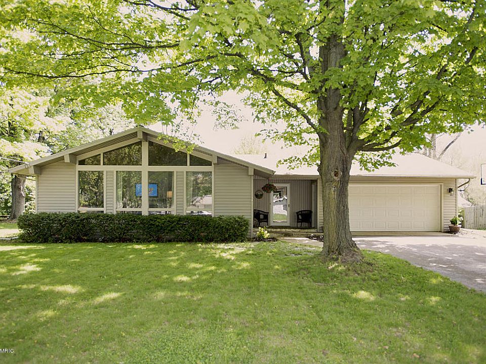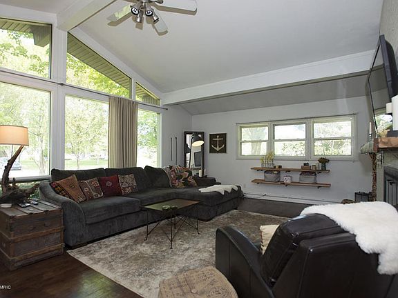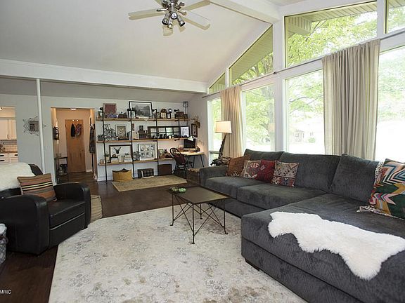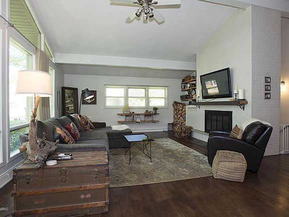 Ranch style with spacious, open floor plan. Walk in front door to beautiful open living room with wall of windows facing west allowing natural light to fill the living, kitchen and dining areas. LR with floor to ceiling brick gas log fireplace, above flat screen TV negotiable. Updated kitchen smartly featuring contemporary design, butcher block tops, subway tile back splash, center island, ceramic flooring, pantry and stainless appliances. Master bedroom plus 2 additional bedrooms, two full upda ted bathroom with granite tops. Great finished lower level with gas log fireplace, additional gaming room with pool table. Mechanical room with good storage, newer water heater. Private, wooded backyard.