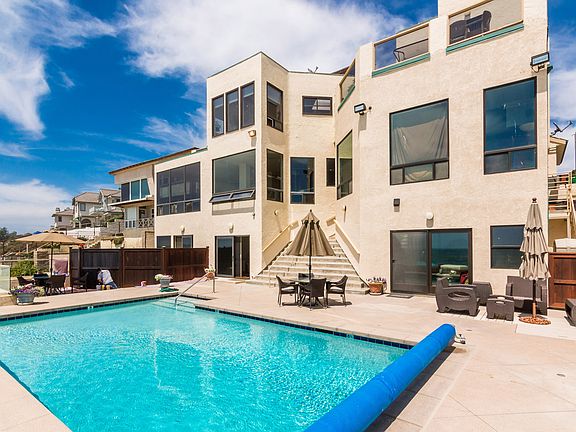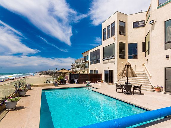 2 Bedroom + 1 Optional / 2.5 BathroomThe epitome of luxury beachfront living! Offering breath taking views of the Pacific, ocean breezes, and sounds of the surf. Enter this one-of-a-kind home through a custom solid mahogany front door onto beautiful acid washed Turkish marble stone floors that run throughout. Oversized floor to ceiling windows with gorgeous white water views encase the main living floor. The awe-inspiring kitchen boasts Bianco Romano granite counter tops, Thermador stainless steel appliances customized with veneer panel doors and 6 burner gas range with stylish glass and stainless Miele vent. Spacious office includes a large built-in desk, cabinets and shelving in a natural Anigre and Maple finish. Powder room features Onice Verde Persiano polished slab counter top, Cifial wall mount lavatory faucet and dark stained Anigre cabinets. Make your way downstairs to the grand master suite with access to private fenced oceanfront patio and master bath complete with oversized two person shower, freestanding tub with overhanging chandelier and Calacatta hewn marble slab countertop and flooring. Additional large bedroom has access to pool area and en suite bath with natural Birds Eye Maple veneered cabinets, Onice Verde Persiano polished slab counter top and Sandstone glass mosaic backsplash and flooring. Entertain your guests on the expansive back patio complete with solar heated saltwater pool, glass deck surround, gated beach access and of course spectacular ocean views. Seller spared no expense in upgrading and remodeling this exquisite home! Additional features include: Toto dual flush toilets in all baths, mudroom with sink and storage, 1 car garage and 2 additional parking space, security front gate with intercom, whole house surge protector, Noritz tankless water heater and much more.