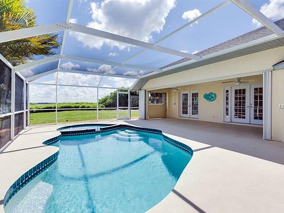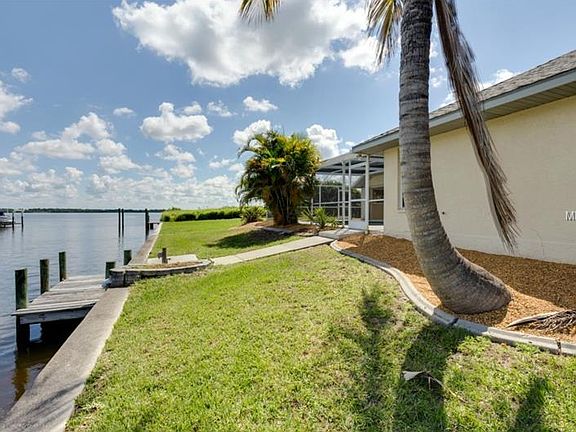 Stunning waterfront home with immediate access to deep water, the Myakka River, Charlotte Harbor and the Gulf of Mexico. Located on a quiet cul-de-sac in Gulf Cove, this extremely well maintained home has many features you would expect in an executive estate. The decorative front doors lead to the formal dining room and living room overlooking the pool and waterfront. The home features a very spacious family room with a fireplace and beautiful views of the river and open to the large kitchen with ample cabinetry. The kitchen features a huge pantry, a breakfast bar, and a breakfast nook overlooking the pool and water. The master bedroom features access to the pool, huge walk in closets, and a beautiful en-suite bathroom with a very spacious shower, his and her sinks and custom cabinetry. The two guest rooms are spacious with walk in closets. The pool overlooks the waterfront and the river, and offers plenty of room to relax in the sunshine. The lot has a concrete seawall with a new dock and 10,000 lb boat lift.. The garage even features a workshop area. The home is equipped with hurricane panels. The house is located in a waterfront community, with its own private community dock, playground and park. The beach, golf and shopping are only a short drive from the home. This is a beautiful slice of paradise. (Additional lot to the right of the home does NOT convey with sale).