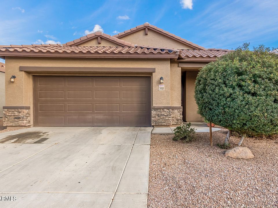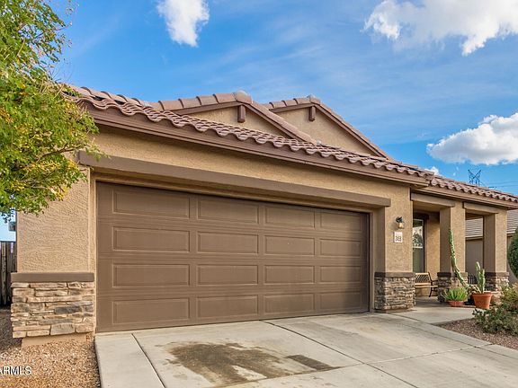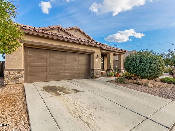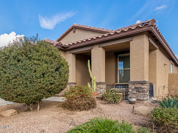 Start living in this beautiful 3-bed, 2-bath home w/mountain views in Watson Estates! It has stone accents on the facade, a 2-car garage, and a low-care front yard. Come inside to find tile flooring, carpet in all the right places, an earth palette, and a great room w/glass doors merging the inside and outside activities. The kitchen exhibits recessed lighting, chocolate-stained cabinets, SS appliances, granite counters, a pantry, and a breakfast bar. Relax after a long day of work in the main retreat, offering a walk-in closet and a private bathroom w/dual sinks. All bedrooms enjoy plush carpets. You'll surely love to spend relaxing afternoons under the covered patio in the spacious backyard while enjoying your sunset beverage! There's a room for a pool! Don't wait any longer!