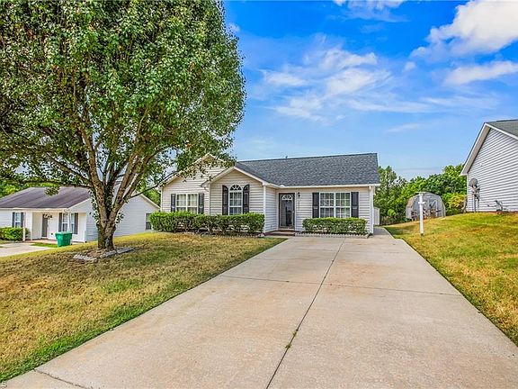 Vaulted living room is spacious and has plant shelf. 3 bedroom 2 bath. Freshly painted interior and exterior pressure washed. Primary has en suite bath. Ready for you to move in! Great floor plan with lot of storage and walk in closets. Laundry room. Convenient to High Point dining and shopping 30 minutes to Airport. High Point University about 10 minute drive. Would also make great investor property. Shed to remain. Davidson county and NO HOA.