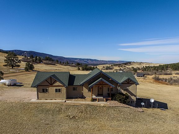 Custom home on 5 Beautiful Acres in Valley Park! Loaded with upgrades and shows like a model home! Custom Log Accent Construction and Stucco exterior combines True Colorado living with low maintenance. Home features large main floor master with 5 piece master bath with his/hers walkin closets + Large main floor office. Beautiful Open Kitchen features granite counters, Large walk in Pantry , stainless steel appliances, Custom Cabinetry and large eating space. Radiant floor heat throughout with stained concrete Floors, carpet in bedrooms. Family room features lots of windows to take in the view and massive floor to ceiling stone Fireplace. Beautifully finished walkout basement with high ceilings and generous sized rooms allows tons of natural light. Huge Awesome Deck with custom railing & partially covered, Facing west/Sunsets are amazing! 3 car Oversized garage and built in indoor/outdoor Dog Run, Main Floor Laundry. Better Hurry! Horses are allowed