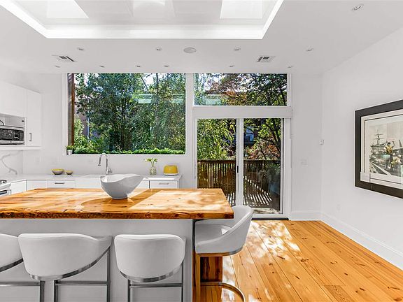 This is it! The absolutely perfect home, custom designed by a renowned architect, is on one of the most beautiful streets in Downtown Jersey City. Every inch of this 20 ft. wide home has been thoughtfully designed as the perfect dream home for a growing family. Every element of this home has been carefully planned with attention to each detail in both form and function. The perfect layout is an owner's triplex with 4 br's plus home office, 2.5 baths and an additional large family room/sitting room on the top floor. Custom-built by a master carpenter, the reclaimed 150 year old Fir wood island welcomes you into the bright and exquisite kitchen with sunlight streaming in from oversized windows and skylights that you will want to entertain in and never leave with stainless steel appliances and gleaming quartz countertops, and a deck leading down to a large backyard landscaped by Hufnagel. Brand new wide plank Carlisle flooring, speakers wired for sound throughout, custom California Closets, an additional huge walk-in closet on top floor, exquisite bathrooms finished in Porcelanosa tiles and fixtures with heated floors, and large rooms are among the many features of this grand home. A Japanese tea house -inspired structure sits in the back garden and, with its own electricity, heat and air conditioning, makes for a unique home office or children's playhouse. The 1 BR rental apartment on the ground level provides an additional income-producing advantage. This exquisitely renovated 2- family home is located only one block from Hamilton Park, which offers the largest playground in Jersey City, tennis courts, basketball court and more. This is the ideal home and neighborhood for a young, growing family. Be sure that you don't miss it!