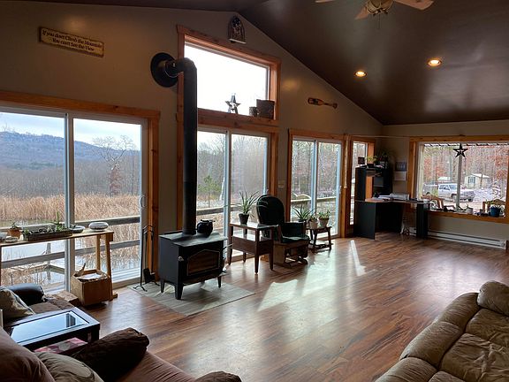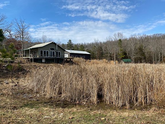 PRIVATE home plus a 62'x40' guest house/workshop on 20 acres (40 additional acres also available)!!! Very close to the Buffalo River National Park. This comfortable country home features 2BR-1BA, wood stove heat, cathedral ceilings, loft area, walkout basement bedroom, 3 decks, 8x32 covered porch overlooking the year-round pond, and calming country views. MUCH more than an expansive workshop, the 2,480 SF shop building is rustically finished with 3BR-1BA, LARGE game loft, wood stove, lovely wood walls, utility room, partially finished kitchen room, and plenty of room for guests!!! 20 acres includes approximately 5 acres of pasture and 16x24 storage barn with 15x24 attached lean-to.