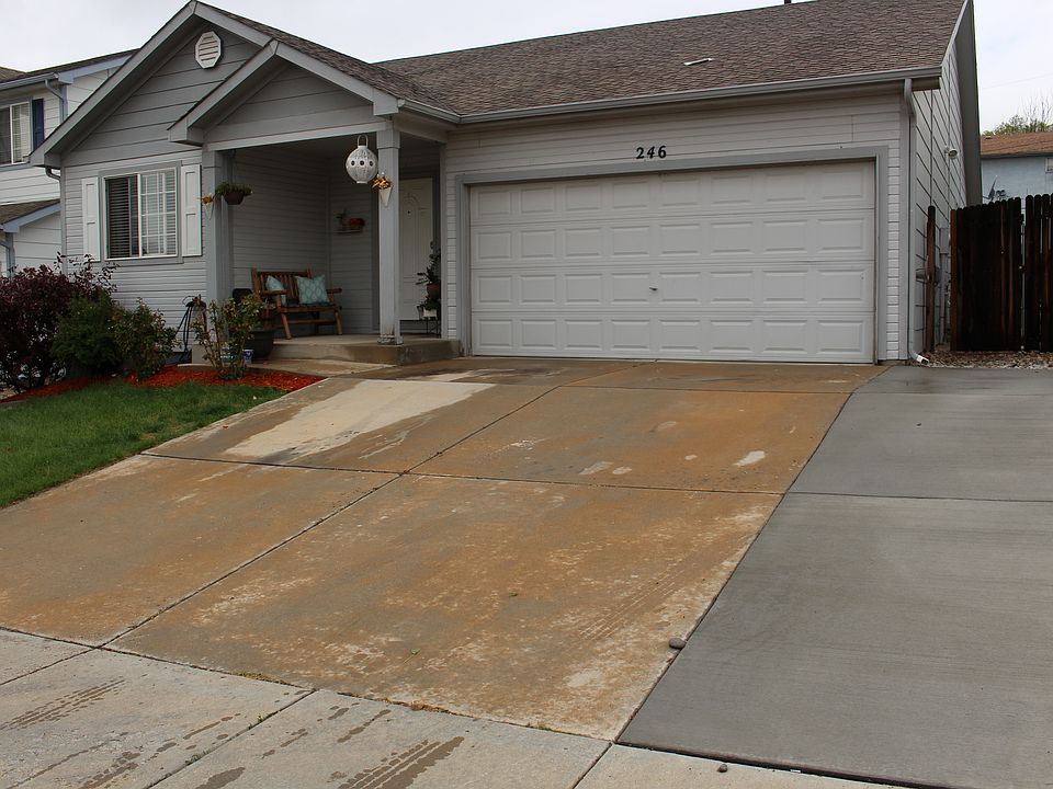 Three bedroom two bath home with easy access to Peterson and Fort Carson. This home offers one level, split-floor plan living with two good sized bedrooms separated by a full bath in front of the house. The living area is spacious and open to the kitchen for all of your entertainment needs. The master suite is in the back of the house and features private bath and walk in closet. The kitchen has plenty of cupboard space, newer stainless steel appliances including microwave. The sliding glass door next to the eating area steps out onto a stamped concrete patio with a pergola and a generous sized back yard with an irrigation system. Two car garage, gas heat and central air complete this home as a great find! Sellers are motivated!