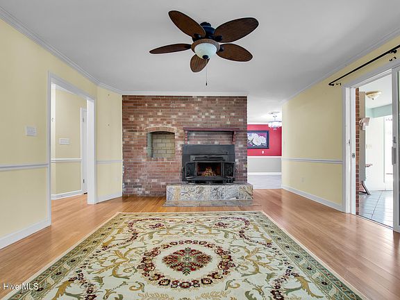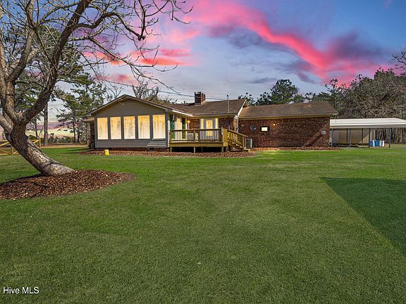 Nestled on over four picturesque acres in Aurora, NC, this charming home offers the perfect blend of comfort, functionality, and serene country living. Inside, the spacious kitchen is filled with natural light and features a large center island, abundant cabinetry, and plenty of counter space, making it ideal for cooking and gathering. The inviting living room, complete with a cozy wood-burning stove, provides a warm and welcoming atmosphere, perfect for relaxing on cool evenings. A bright and airy sunroom offers a peaceful retreat to enjoy morning coffee, read a book, or simply take in the scenic surroundings. Step outside onto the back deck and embrace the beauty of nature in your own backyard.