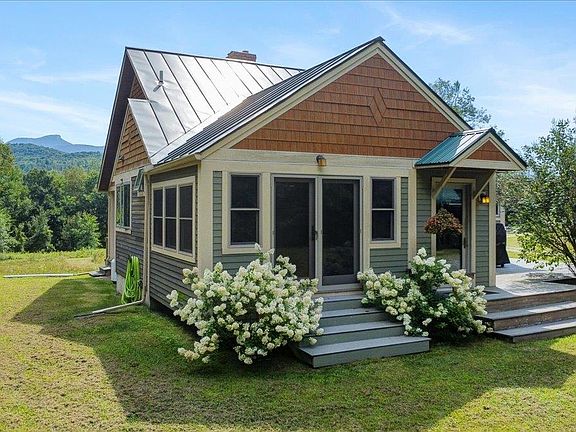 Come and discover all the quality and craftmanship of this custom Yestermorrow designed Craftsman inspired contemporary cape has to offer. This east facing home has the quintessential 180 view of the Green Mountains and Camels Hump with every room's focal point to capture that view. Quality materials and attention to details is what you will find in this one of a kind property. Natural woodwork, solid wood doors, pine and birch floors, Panton stone fireplace and a brick & slate hearth with woodstove. Other unique design features include repurposed Liberty Head barn beams and multiple stained glass windows, and 2 pocket doors. Anderson windows and 3 sets of french doors. Living room and 1st floor bedroom have 9 ft ceilings. The 1st floor bath features a large jetted tub, tile floors and large 3/4 shower. Vaulted ceilings on the 2nd floor and sunroom. The 2nd floor bedroom with skylights and an ensuite 1/2 bath. A 2nd floor bonus room could be a bedroom and was intentionally built with no closet to create the ultimate Yoga room with a wall of windows w/views. The 5x8 mudroom is heated, slate floor, builtin bench, shelves and a glass french door creates an airlock for heat efficiency. Walkout basement with 9 ft ceilings potential to finish. Designed for fuel and lifestyle efficiency far ahead of its time with quality and style to last for decades.Metal roof. Solar panels on a 2 car detached garage with a large loft for storage above. All dimensions approx. prebate applies