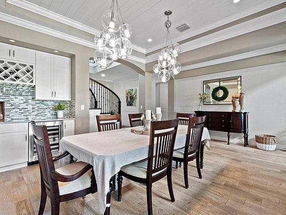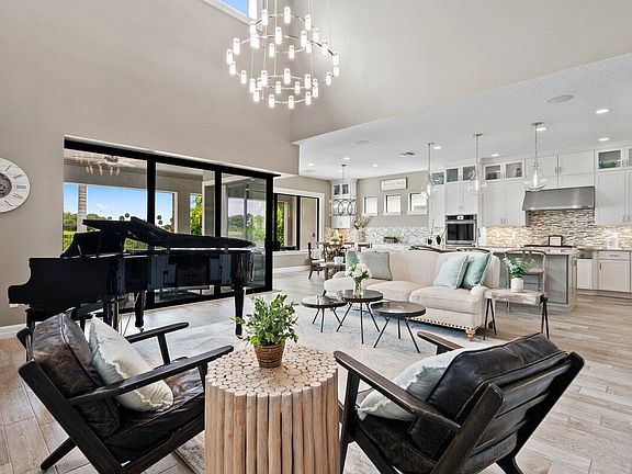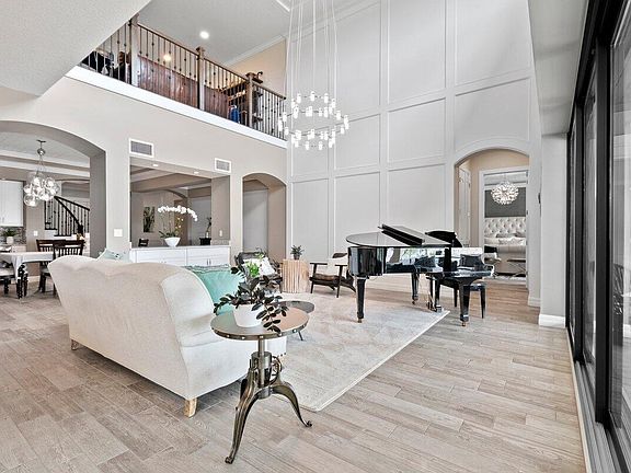 Largest floor plan available in Sonoma Isles featuring 6 bedrooms, 6 full baths with media/theater room, 3 car garage, private bar, and first floor master. Situated on an amazing lot overlooking peaceful water and golf course views. Endless upgrades include a new whole home generator, smart home automation, Sonos sound system, custom millwork and built ins, tray ceilings, a gourmet kitchen with upgraded Jenn Air appliances including a gas stove, dual ovens, upgraded soft close cabinets, quartz countertops, and tile backsplash to name just a few. Your first floor master feels like a private oasis offering you your own sitting area, a huge master bath, enormous walk-in shower, and beautiful custom walk-in closet with California closet system. Take a short stroll up the spiral staircase and enjoy a movie in your very own home theater/media room. Or relax and have an ice cold drink at your very own private bar where everyone will always know your name! Enjoying the Florida lifestyle to the fullest means you must have a pool! Walk through the disappearing slider doors and take a dive into the refreshing custom salt water infinity pool with sauna! Or stay cool under the misters and enjoy the serenity of the lakefront behind the protection of your disappearing screens on the patio surrounded by the beautiful travertine pool deck with fire pit. The upscale community of Sonoma Isles even includes resort-like features such as 24/7 security, community clubhouse with meeting spaces, fire pit, tennis court, pickleball court, playground, and more!