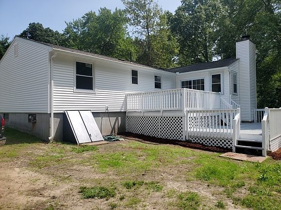 A must see. Just renovated ranch. This home boasts new vinyl siding, new vinyl windows, new flooring, and new appliances, in move in condition on a large lot. Completely new septic system. This family home has 3 bedrooms, 2 full baths, new eat in kitchen that leads nicely into a French doored, cathedral ceiling family room with a wood stove, and a sliding door going out to a large two-tiered deck overlooking a large yard. The spacious bowed window, open living room is a perfect space for entertaining. There also is an attached oversized one car garage. The basement has a finished room with a full bathroom.