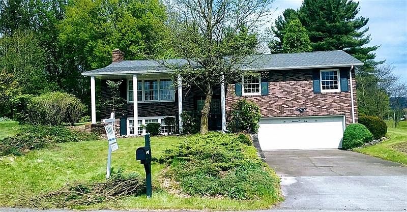 Solid, well-built 3 BR 2Bath split-entry on a level, semi-wooded lot and includes a 2nd wooded parcel that affords plenty of privacy. Sit on the covered back porch to enjoy nature or to unwind. Awesome game/family room with wood burning fireplace on the lower level. Bath on lower level has been completely re-done. Bath on main floor has new updates. Impressive entry and sliding door from dining room to covered back porch. Generous room sizes and a large 2-car integral garage. A must see! Easy access to Rt.43, Morgantown, Uniontown, Connellsville, the Laurel Highlands, shopping, dining, etc.