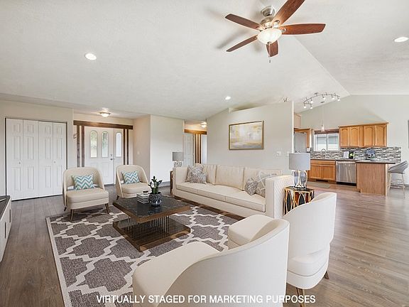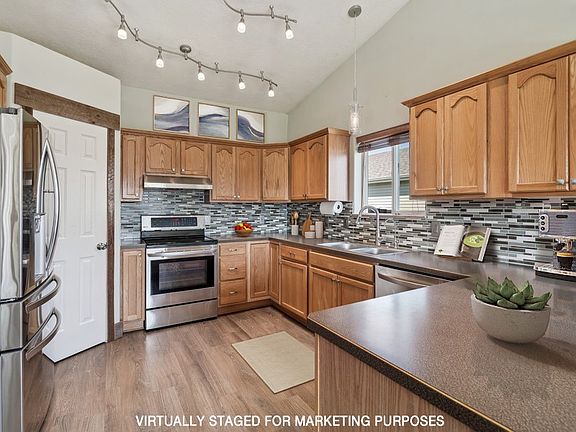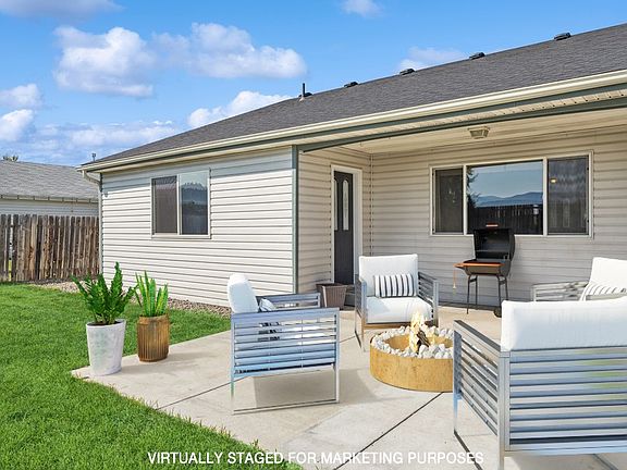 Spacious 1,720 sqft 3 bedroom 2 bath ranch style home on .27 lot with fenced backyard. 30 year roof is 2 years old as well as the garage door and garage door opener. Home has vaulted ceilings, open kitchen with stainless appliances, breakfast bar and pantry. Large master suite has door to the back patio, master bath has jetted tub & separate shower and large walk-in closet. The back patio is partially covered and there is 220 electric for future hot tub. There is a separate laundry room, covered front porch, extra parking along the driveway, dble gate to side graveled area to park your toys, landscaped with sprinkler system and attached finished 2 car garage. Call Bobbie Vlasak 406-253-1637 or your real estate professional.