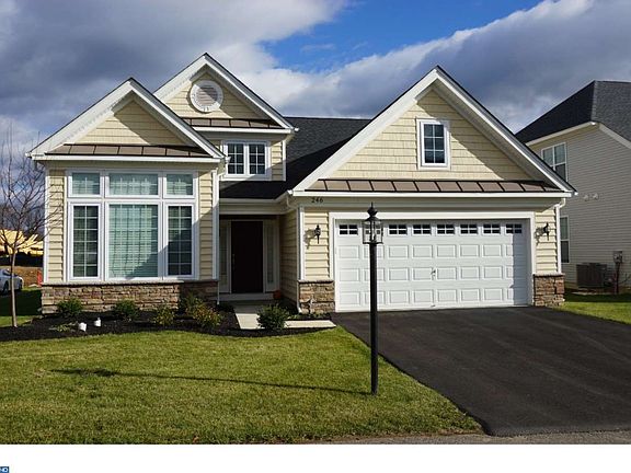 Brand new single home, never lived in. This 3 bedroom 2 bath Fairhaven model is in the Toll Brother 55 community of the Regency at Yardley. Everything is on the ground floor a true rancher. Opportunity to just move in and not have to go through the building process or time frame. Quick delivery! Corner lot location with front driveway to attached 2 car garage with opener and inside access to the home. The formal entrance is through a grand foyer entrance with very high ceilings high windows flooding it with sunlight and ceramic tile flooring. Formal dining room with a wall of windows, hardwood flooring, chair rail, crown moldings and chandelier. The hardwood carries throughout the kitchen, great room and hallways. Laundry/Storage room with access to 2 car garage with pull down storage. Hallway leading to 2nd bedroom, den/office(3rd bedroom)and 3 piece ceramic tile hall bath. Magnificent kitchen with upgraded level granite and 42' cherry cabinetry, deep stainless sink with garbage disposal, ceramic back splash and island seating area. The upgraded stainless appliances include 5 burner range top, dishwasher, wall oven and microwave. Amazing great room with marble fireplace and exit to rear patio. Wonderful upgraded thicker woodwork throughout. Crown moldings and chair rail. Master bedroom with tray ceiling, enormous walk in closet and large ceramic tile master bath with double stall shower, granite tops, double sink, enclosed water closet and linen closet. Recessed lighting throughout the home. Association community building is very impressive. Indoor/outdoor pool, gym, tennis etc.