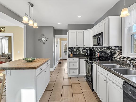 Nestled on a quiet street, this Farmhouse has all the old-style charm with beautiful modern touches. Greeting you is the Covered front porch which spans the front of the house. Upon entry you will appreciate the High ceilings and original hardwood floors leading the way to the fully equipped kitchen with abundant cabinets, beautiful backsplash and butcher block island. Off the entry to the right is the large living room that leads to the formal dining room lined with windows that let the natural light in. Convenient half bath and laundry room off the kitchen. On the second floor you find 4 bedrooms and a huge, stylish bathroom between the 2 bedrooms on the left. The 4th bedroom would make a great office! Through the 4th bedroom, you find the Spectacular master suite on the 3rd floor with High dormer style ceilings and a stunning master bath with large soaking tub with a great view! Close to major roads, shopping and more while still tucked away in a quiet location.