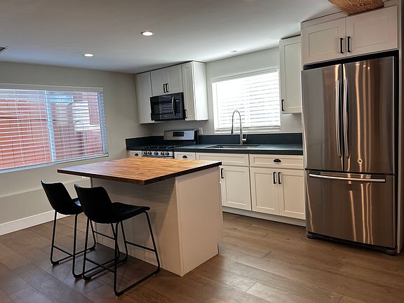 Nestled in a quiet, safe neighborhood, this 2-story ADU offers privacy and comfort. Fully remodeled just 2 years ago, it features a full kitchen with modern appliances, in-unit washer/dryer, and sleek hardwood floors downstairs. Upstairs, a spacious bedroom with plush carpeting easily fits a king bed plus seating or a home office setup.