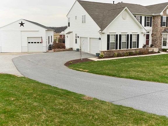 This is your own mini-estate! Situated on over an acre of land, this property includes a 30%u2019 x 50%u2019 garage with high ceilings, an RV bay and includes all utilities. Extensive out door spaces including an above ground pool, paver patios and a PVC deck with great country views! In addition, there is a garden shed and a swing set. The main home has a dramatic 2 story foyer with quality laminate flooring with an open stairway to the second floor with two glass paned doors opening to an office that features large bay windows to bring in all the light, wood flooring and crown molding. The formal dining room also features two large bay windows, wood flooring, a chair rail and crown molding. Off the dining room is your large kitchen area boasting Corian counter tops, wide plank hickory floors, beautiful raised panel kitchen cabinetry, ceramic tile backsplash, recessed lights, a pantry and stainless steel appliances that stay. Located beside the kitchen is the breakfast room. This features a cathedral ceiling with a lighted ceiling fan, a large circle top window plus additional windows for plenty of natural light. From this room you can also access the back deck. A half bath with a pedestal sink and a mud room that accesses the garage are also on this floor. Completing the first floor is a family room with a stone fireplace with a pellet stove and a lighted ceiling fan and wall to wall carpeting. The second floor has a landing with laminate floors and recessed lights. This level also features four bedrooms including the master suite. This room has wall to wall carpeting, a lighted ceiling fan, and two walk-in closets. Highlights of the master bathroom include a ceramic tile floor and a ceramic tile shower with a garden tub, a double bowl vanity, vaulted ceiling, linen closet and a separate toilet room. The three remaining bedrooms all feature laminate flooring, lighted ceiling fans and plenty of closet space. The hall bath consists of a large vanity, a tub shower combination with sliding glass doors, a linen closet plus a ceramic tile floor. The finished lower level walkout basement features an additional bedroom with a laminate floor, a full bathroom, laundry room with a washer and dryer with plenty of cabinet space, plus a large rec room with wall to wall carpeting and French doors that access your back yard. There are many more features that make this home attractive for today%u2019s buyer!