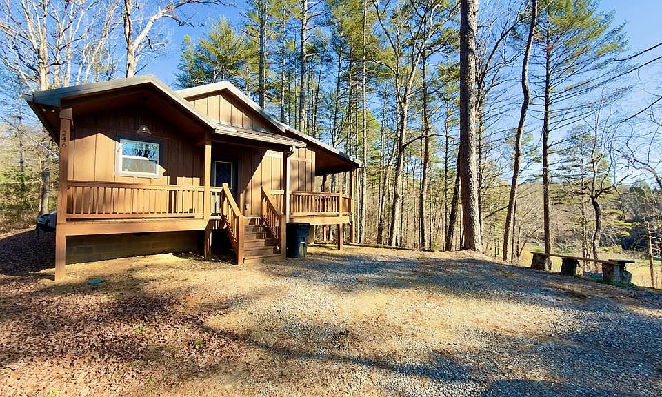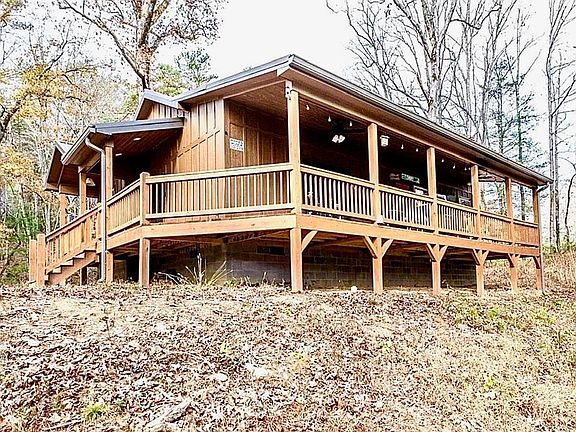 Nestled in a peaceful, wooded setting, this beautifully crafted single-level cabin offers 2 bedrooms and 2 bathrooms and was completed in 2022 and being sold fully furnished. Designed for both comfort and durability, the home features a metal roof and classic rustic charm that blends seamlessly with its natural surroundings. A wraparound deck and two covered porches provide inviting spaces to enjoy the outdoors year-round, while a crawlspace below offers additional storage. Inside, the open Great Room showcases rich wood floors, a vaulted wood ceiling, and a stunning floor-to-ceiling stacked stone gas fireplace. The space flows effortlessly onto the deck, perfect for relaxing or entertaining while taking in serene forest views. The kitchen is both functional and stylish, featuring cream-colored cabinetry, granite countertops, stainless steel appliances, and a striking apron-front farm sink. A central island offers additional workspace and seating, making it ideal for gatherings. The primary suite serves as a private retreat with wood floors, a vaulted wood ceiling, and a spa-like en-suite bath complete with double vanities and a tiled walk-in shower. A comfortable guest bedroom and full bath, along with a convenient laundry area, complete the home. This inviting cabin combines modern finishes with rustic appeal in a tranquil natural setting—perfect as a full-time residence, weekend getaway, or investment property. Schedule your showing today and experience this serene retreat for yourself.