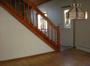 Spacious house with grand center stone fireplace, cath ceilings, hardwood flooring, nice kitchen with viking stove, deck and porch, skylights, attached garage and separate barn with horse stalls. Nice private country setting.