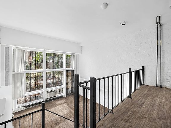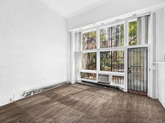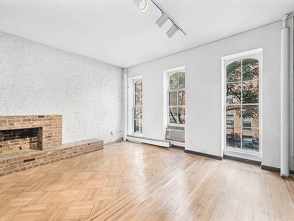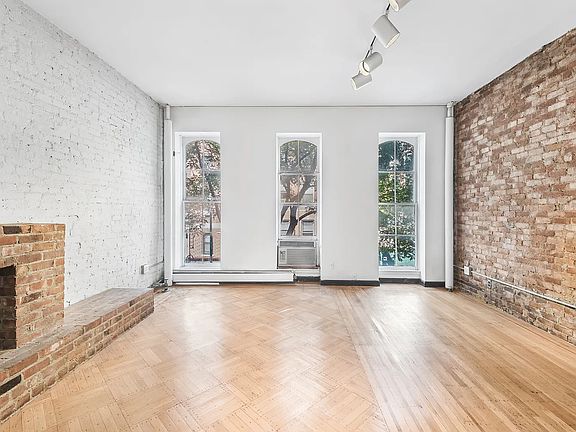 Three unit Townhouse. CAN BE DELIVERED VACANT. Ground floor triplex has a garden, double height living room and is commercially zoned and can be used for income. There are two other residential units. Second unit is a floor through. The top two floors are a newly renovated duplex with hardwood floors, brand new stainless steel appliances, balcony overlooking double height living room with two stories of exposed brick walls, two bedrooms, two baths, third room for office or library, etc., six brand new windows, new LED lights, two walk-in closets, lots of storage. Exposed brick wall in entrance lobby. and going up to second floor.