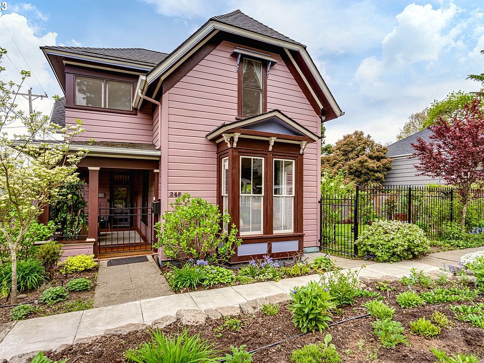 One of a kind stunning Victorian in the heart of Eugene! Located in the East Skinner Butte Historic neighborhood close to all the best shops and restaurants, 5th Street Market, the river bike path, University of Oregon, and downtown. The Cogswell-Miller house has been impeccably restored with thoughtful attention to every little thing. Revel in the blend of vintage character with up-to-date amenities - pristine original details including high ceilings, large rooms, built-in features, original windows, clawfoot tub, and beautiful wood floors throughout combined with curated modern updates. Graced with period fixtures, porcelain tile shipped from England, marble counters, and exquisite wallpaper. Elegant layout with a refined entry and a classic staircase. Big cheery fully remodeled kitchen with marble counters and stainless steel appliances leading into the formal dining room. Generous bedrooms with built-ins, spacious closets, a second story sunroom, and fully updated baths. Fully fenced backyard with multiple outdoor spaces, toolshed, chicken coop, and an awesome deck with southern views of Spencer's Butte and the city. Two car garage, wine cellar, and abundant storage. Edison, Roosevelt and South Eugene schools. This one is truly unique and original!