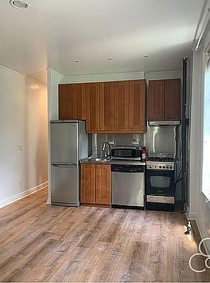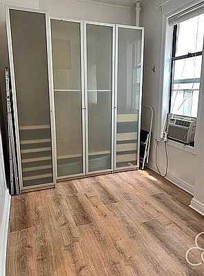 AVAILABLE JULY 1. This spacious and bright two-bedroom renovated apartment is in a walk-up on the 4th floor. It has beautiful floors throughout, custom wood armoires in all rooms for abundant storage, and an expansive living room. The open kitchen has a stainless steel countertop as well as backsplash and appliances. It includes custom wood cabinetry. The living area has 2 windows and can easily accommodate seating as well as dining. Both bedrooms have 2 windows each and are at opposite ends of the apartment giving each person great personalized space and privacy. The bright windowed bathroom has travertine walls and flooring and includes a washer/dryer. This boutique co-op is located in a vibrant neighborhood just minutes from Whole Foods, nightlife, restaurants, health clubs and public transportation (E,M, 4,5,6 trains). Email to schedule an appointment.