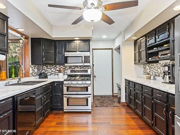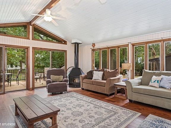 Tucked away south of town, in the Oak Manor subdivision is this tastefully updated and upgraded quad level. With just under 3,000 sq ft of finished living space, this home features 4 bedrooms and 2.5 baths. On the main level you will find a foyer, dining room w/ custom built-ins, a 1/2 bath and a large eat-in kitchen which is open to the GORGEOUS living room featuring vaulted ceilings, wood burning stove and panoramic views of the backyard. The upper level has 3 lg bedrooms and a full bath. The lower level is dedicated to the private and luxurious Master retreat featuring a wood burning fireplace, huge walk in closet and 3/4 bath. The basement is partially finished featuring a laundry room, home gym and storage room. Sitting on over an acre, this corner lot is partially wooded and perfectly private. New in fall of '18: HVAC & water filtration system; the roof is only 5 years young. Don't miss out on the opportunity to make your own magical memories in this family friendly home!