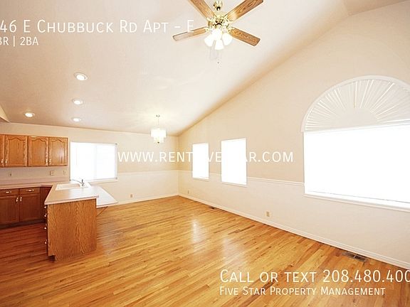 Large Apartment with Gorgeous Vaulted Ceilings! Now offering FREE applications, call for additional details. This 3 bedroom 2 bathroom apartment features a stunning living room, dining, and kitchen area with incredible vaulted ceilings and beautiful hardwood flooring. Not to mention, BRAND NEW carpet installed 2025! The spacious primary bedroom flaunts double closets and its own private en suite bathroom! What more could you want? Additionally, you'll enjoy convenient off-street parking, in unit washer and dryer hookups, central air conditioning, gas heating, and included landscaping! This apartment is conveniently located with quick access to I-15 and all the dining and entertainment options that Chubbuck Rd and Yellowstone Ave have to offer. Schedule a showing today! Double Closets Fiber Optic Internet Available Free Application: Call For Details Gas Forced Air Heating Landscaping Included Upstairs Apartment Visit Our Website Rentfivestar.Com Washer And Dryer Hookups