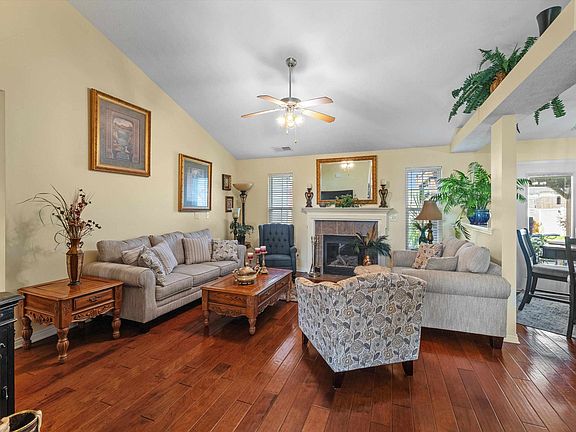 Let me tell you about 246 E. Fox Hollow Run... As soon as you pull up, you'll notice it's on a fantastic corner lot, giving you a bit more space and great curb appeal. Step inside, and you'll immediately appreciate the beautiful hardwood flooring that flows throughout the main living area. The kitchen is truly the heart of this home, featuring gorgeous granite countertops and updated appliances—it's definitely a space you'll enjoy cooking in. Now, let's talk about the primary suite. It's a wonderful retreat with an updated tile shower that feels quite luxurious. But what truly sets this home apart is the backyard. It's completely enclosed with a vinyl privacy fence, creating your own private oasis. You'll love the covered pergola with ceiling fans—it's the perfect spot for outdoor entertaining or just relaxing on a warm evening. There's also a brand-new storage building for all your extras, plus an adorable playhouse that could easily be used as a charming potting shed. And the landscaping? It's simply beautiful, with a flower garden that adds so much charm. This home really has it all: comfort, style, and a fantastic outdoor space.