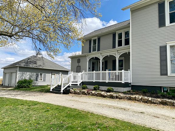 Historic but modern 2-story home full of charm, ready for a new owner! You'll find some historic beauty in the 11ft ceilings, two fireplaces made of Italian marble, along with stunning hardwood flooring throughout. Cozy up in the den/family room and enjoy the woodburning stove. All appliances stay! There are two brand new furnace and A/C units with smart thermostats (2021). Take a peek at the stunning bathroom remodel with main floor laundry (2020). Water heater (2021), Radon mitigation system, central humidifier, and some new vinyl windows throughout. New composite deck perfect for relaxation! Detached two-car garage, extra workshop area, and a storage shed out back. The property totals 1.27 acres which consists of: peach trees, apple trees, plum trees, raspberry bushes, blueberry bushes, and rhubarb plants. Call to set up a showing today! Subject to seller's finding their home of choice.
