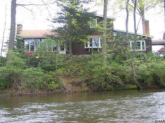 Unique wood-sided 2-story along world renown Yellow Breeches Creek. 1-car/workshop building w/2nd floor. Plenty of storage. Concrete masonry side patio. Geo-thermal heating w/central-air. Large LR w/ceramic tile floor. Woodstove insert. Large FR w/wood floors and stove insert as well. A must see. Priced to sell. County acquired portion of property to widen existing Craighead Bridge currently 1-lane. Stairs lead from house to Yellow Breeches Creek. Large beach area. Historic cave on property. See Assoc. Docs