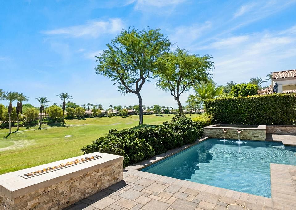 If you want an updated home with NO WAIT for Golf Membership, this is the home to see! Nestled along the 1st hole of the Grove course, lies this exquisite Palo Verde 5 residence, breathtaking landscaping. Step inside to discover a well-designed floor plan that encompasses a spacious living room, an expansive kitchen that seamlessly flows into a cozy family room, and an elegant formal dining room. The primary suite is a true sanctuary, boasting two generously-sized walk-in closets, a remodeled primary bathroom, and a luxurious soaking tub for your ultimate relaxation. In addition to the main house, a detached casita offers a private retreat for family members and friends, conveniently situated near the beautiful courtyard. The allure continues outdoors with a private pool & spa, inviting you to indulge in refreshing dips & tranquil moments by the built-in gas fire pit. This exceptional home also features owned rooftop solar panels, newer A/C units, a soft water system, FloLogic water flow shutoff system, upgraded lighting throughout creating a modern ambiance that is as functional as it is stylish, plus living room and family room electronic shades. Beautiful travertine flooring adds a touch of sophistication to every step you take. Prepare to be amazed, as the home is meticulously curated with exquisite pieces to complement its elegance. The furnishings are included as per the inventory list. This is the best priced 4 bedroom home on the market w/available Golf Membership.