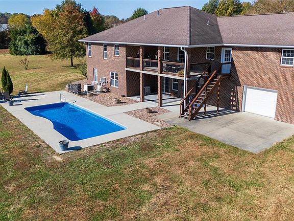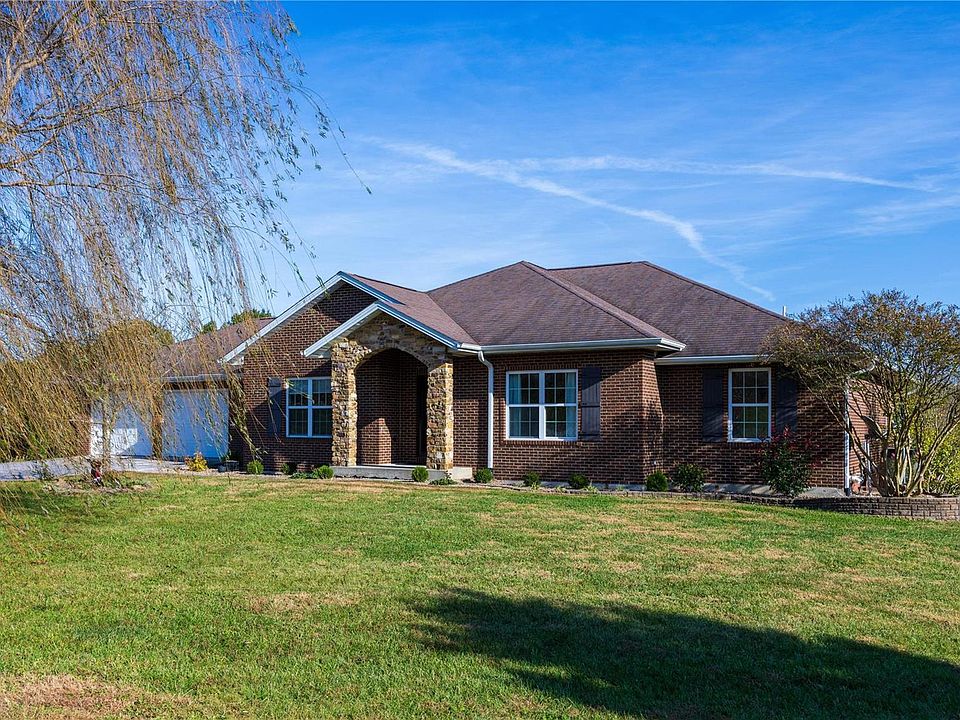 Welcome to your dream ranch home! This stunning 2,100 sq ft residence sits on a private 2.75-acre lot, conveniently located near Cape Girardeau and Jackson. Step inside to an open-concept living area that seamlessly connects the spacious kitchen, featuring beautiful granite countertops, a generous 7x10 walk-in pantry, an island, and an eat-at bar. The dining room opens to a covered deck, perfect for relaxing while overlooking the 13x28 inground heated saltwater pool and outdoor fireplace—ideal for entertaining!