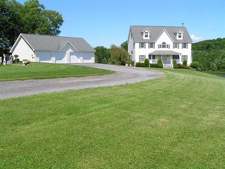 LOCATION,LOCATION!! As you approach this fine property you will see clean hay fields green woodlands and stone wall fencing. Thru the gated drive make your way to this magnificent setting of an attractive 2 story home and 4 car garage hidden from any passerby's on the town road. Arriving as enjoying views you pass a rustic cabin shell used as the family "man cave". The long groomed driveway and surrounding fields give complete peace to everyone. The home has a 43 foot long great room containing the kitchen, dining and family room areas with fireplace. From the great room there is a screened sun room that overlooks the spring fed pond waters. Also there is a formal dining room and a living room separated by a spacious foyer leading you up to the second floor where there are 4 bedrooms and 2 full baths. The walk up stairway to the full attic gives easy access for storage, game room, or many other uses. The garage & loft will accept all your vehicles and toys. This unique property will be your prize possession! Located only 5 mins from a GREAT School, Pool, Tennis Courts, newly renovated Library, stores and I-88, 20 mins to Cobleskill/Oneonta.etc.