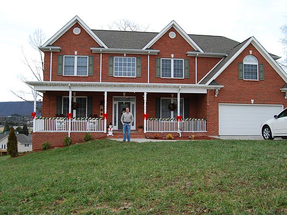 Two story traditional home with fully finished walk-out basement. Two-story patio-deck in back with 180+ degree mountain views, more views from front porch. Home is all brick with very minimal exterior wood (door-frames which are all covered). Faux shutters on every window, three unit HVAC with separate unit for each floor. Basement was used by builder as apartment, has own entrance, could be used for large office (approx 1000 sq ft). 3 bedrooms are suites.