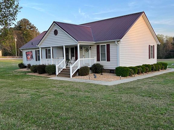 Well-maintained home on 6.28 ACRES! Convenient to US#1, I85, Kerr Lake, shopping & more! Home offers a wonderful open living area, spacious kitchen with lots of cabinets and counter space, recessed lighting, all appliances, island and breakfast area, laundry room with washer/dryer hookup and upright freezer. Dining area open to kitchen and family room w/gas log fireplace, Split bedroom design, each with walk-in closets, hall bath has new LVT flooring, and a walk-in shower. Master bedroom suite offers a walk-in closet, plus adjacent retreat area, great for sitting area, workout area or office, master bath w/jetted garden tub, walk-in shower and double vanity. Crown molding throughout home, energy efficient double tilt -in windows. Outside you will enjoy a relaxing rocking chair front porch overlooking a beautiful landscaped front yard, paved sidewalk, a large back deck great for grilling & family gatherings, a double detached 30x30 garage/workshop w/work bench & electric garage door, security system and a double detached carport! Possibilities are endless with this property! Plenty of room for animals, a large garden spot or a pool....or all three! Don't miss this opportunity! 6.28 level, cleared acres! Take a look today!!