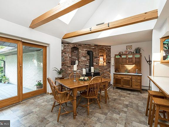 This one just shot to the top of your list! So many options, if you want one-floor living, you got it! Need to expand? No problem, this home has an unfinished second floor currently used as storage but can easily be finished, plus a huge unfinished basement! Eye-catching custom brick cape is surrounded by woods for a secluded and tranquil setting. on 3.10 acres. The eat-in kitchen is instantly appealing with a brick hearth that has built-in arched shelves, electricity, and a TV with a wood stove that will warm most of the home. Exposed beams, skylight. Generous amount of cabinets in natural oak with custom stained glass accent cabinet, stainless appliances including a bosch dishwasher, bosch oven, built-in microwave, and refrigerator. Ample pantry space. Double porcelain sink and recessed lighting. Sliding glass door to large deck, perfect to relax and enjoy your slice of heaven. The spacious but intimate dining room has a pass-through and a beautiful chandelier. The living room has hardwood under the carpet and fresh paint. Special touches include a palladium window, recessed lights, soaring cathedral ceiling with an exposed beam. Gorgeous custom arched brick wood-burning fireplace that expands across one wall, electricity for TV and lights. The primary bedroom has 2 walk-in closets and a primary full bath with a whirlpool tub, walk-in shower, and tile floor. Two additional bedrooms are also very generous in size with laminate flooring and double closets. Hall bath has a jet tub with shower, comfort height toilet, large vanity with stylish faucets, and a linen closet. The laundry room is on the main floor, room has a second refrigerator and works perfectly as a mudroom since the door is directly across from the garage door. The basement is clean and expansive with a french drain. The oil tank is newer. You will love the detached 2 car garage with stairs to extra storage space. You will feel far from the hustle and bustle but you are so convenient to Major routes 422, Rt 73, Route 100. Very close to shopping, Premier Philadelphia outlets and restaurants.