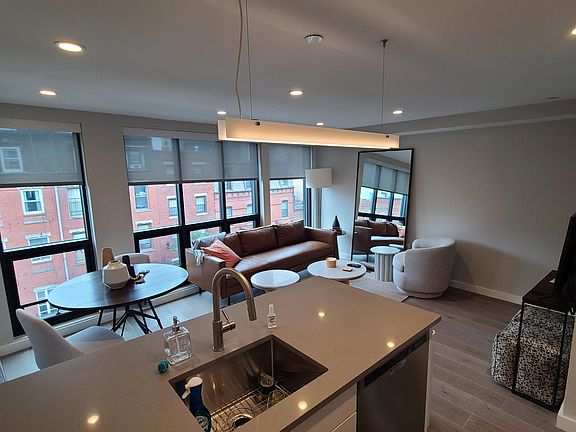 **advertised price is factoring in ONE FREE MONTH RENT on a 12 month lease** Location: Hanover Street in Boston's North End. Right in the middle of everything across from Modern Pastry! All new building from the ground up! This is a 2ND floor 2br/2ba with amazing views down onto Hanover Street. This unit features a fully applianced custom kitchen, hardwood floors throughout, central heating and air conditioning, and laundry in unit! Elevator so no need to do stairs! There is garage parking underneath for $400 per spot available separately. Pets are OK. Pictures and video are of unit #510, this is the identical layout! Just on the second floor. First. Security. Broker Fee 1 year lease **advertised price reflects current incentive of ONE MONTH FREE on the lease price of $4950**