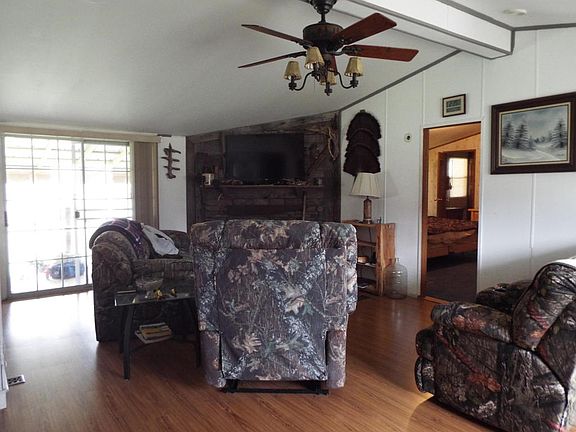 Approximately 1400 Sq ft Double wide mobile home on 2.6 level acres. Permanent foundation. Mostly fenced. 2 storage sheds and an animal shelter. The RED storage shed does not convey. According to the owner the lease on cell tower does convey, but is paid up through 2030.A copy of the lease agreement is on file, buyer is responsible for verifying lease agreement status.