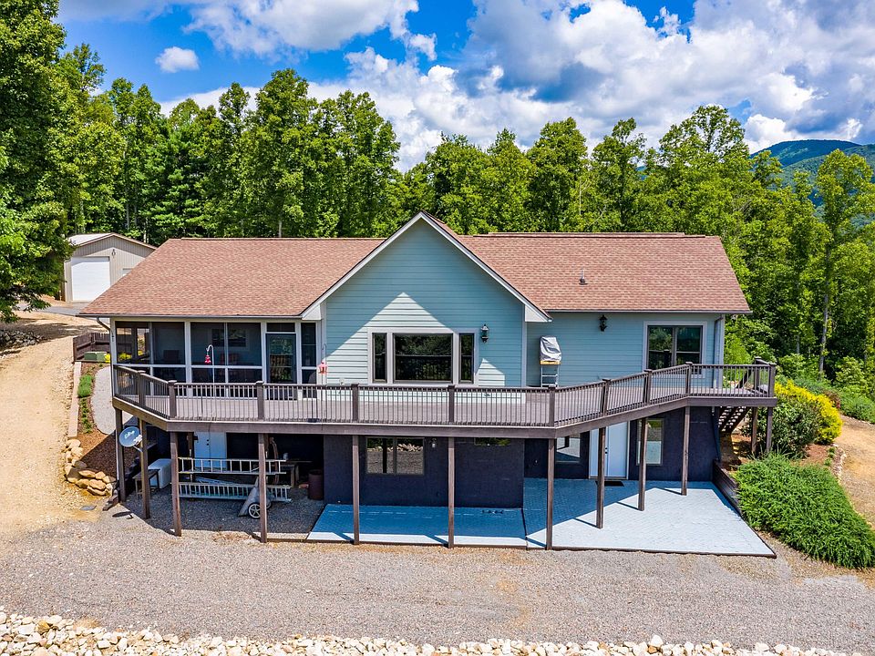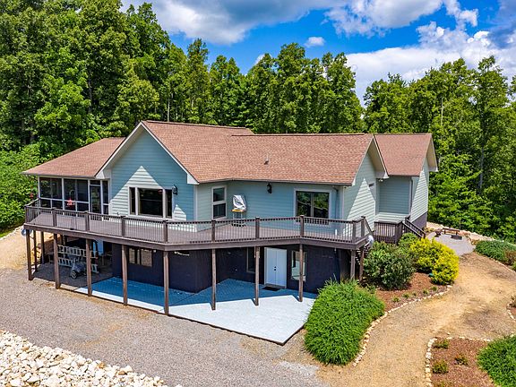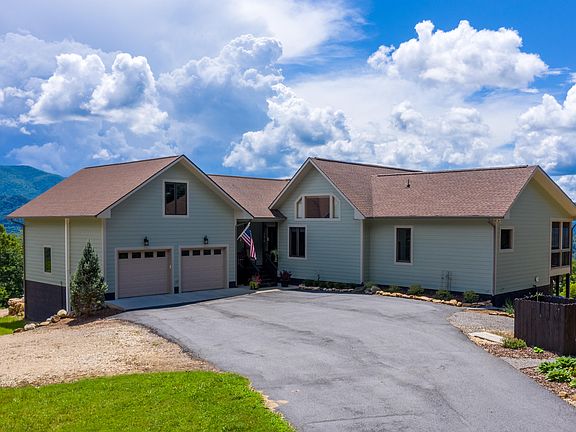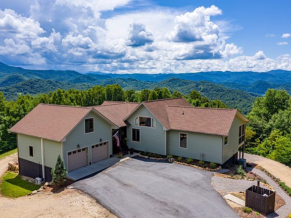 BREATHTAKING MOUNTAIN AND LAKE VIEWS!!! Located at the top of the mountain with over 10 acres of pasture and wooded land, this 3BR/3BA home is a hidden gem you are sure to love! As you pull in the driveway you are greeted with beautiful landscaping and views of mountains that you can almost touch. The driveway wraps around the house and also leads to the 2-car garage. There is also an oversized detached garage with a 14' garage opening perfect for an RV or boat. As you enter the home you are greeted with beautiful hardwood flooring that is throughout the house. The great room features cathedral wood ceilings and ventless gas log fireplace. The great room is also open to the kitchen and dining. The kitchen features cherry custom cabinets, granite countertops and newer appliances. Just past the great room is a screened-in porch that is perfect for enjoying the gorgeous views. The main level master suite features double closets, garden tub and walk-in tile shower. On the opposite side you will find the second bedroom with a full bathroom. Upstairs is a storage room and large third bedroom. Downstairs in the basement is a small utility room great for storage. There is also a large family room, full bath and bonus room/office/playroom. Outside is a large deck and patio area perfect for entertaining. Enjoy the cooler temperatures at night while sitting around the fire pit. Other features include a small garden area fenced-in, tinted low E windows and a separate septic tank for your RV. No HOA fees or restrictions!! Boat ramp access to the lake! Buyer/buyer's agent to verify all info.