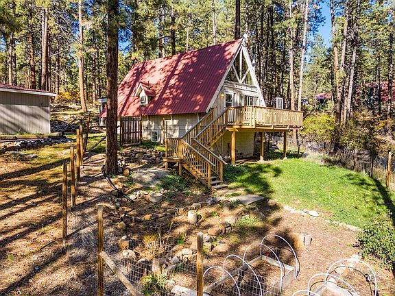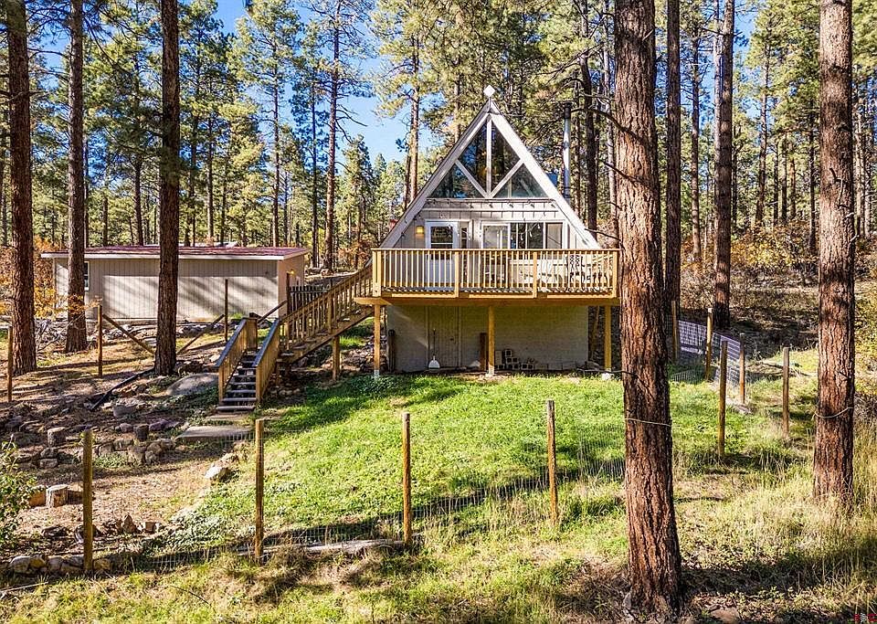 Welcome to your storybook escape — a charming 2-bedroom, 1-bath A-frame cabin tucked away on a private, fenced one-acre lot. Surrounded by nature and filled with beautiful natural light, this home blends warmth, character, and comfort in all the right ways. Inside, the open layout and signature A-frame windows create a bright, airy feel perfect for peaceful mornings or cozy evenings by the fire. The primary suite and full bathroom are located on the main level. The loft includes a small bonus space ideal for a home office, reading nook, or creative studio — a quiet spot to take in the views and find inspiration. Outside, enjoy ample privacy with plenty of room to roam, garden, or simply relax in your own wooded retreat. The fenced yard offers both security and flexibility for pets or outdoor living. A large detached 3-car garage provides space for vehicles, hobbies, or extra storage, and a brand-new water line adds peace of mind. Rural living w/modern amenities and less than 15 minutes from downtown Bayfield. Whether you’re seeking a weekend getaway or a full-time mountain hideaway, this home offers the best of both — serenity, space, and timeless A-frame charm.
