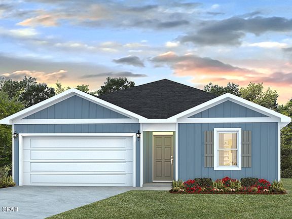 Park Place is a new construction neighborhood in Panama City, Florida. The Freeport is a single-story home with a double garage designed with space for the family in mind and affordability. This home is located on Lot 22 at 246 Lawton Branch Way. As you walk up to this home, you will see vinyl siding on all sides as well as, dimensional shingles and a landscaped yard complete with flowerbed at the front entry. As you enter this 4 bedroom, 2 bath home, you will see 1,387 square feet of spacious, comfortable living. Inside you will see 8' ceilings throughout, engineered vinyl plank flooring throughout the home and carpet in the bedrooms. quartz countertops, white cabinetry and a spacious open living room and kitchen make this home perfect for having guests over. The kitchen has a center island that is perfect for serving kids or guests, a nice size pantry and the stainless-steel appliances include smooth top range, microwave, and dishwasher. Located right next to the dining area, this makes serving meals with ease. The primary bedroom has a spacious bathroom and features a double vanity with granite countertops. A walk-in closet with ventilated shelving is also located in the bathroom, giving you more room in the primary bedroom. The guest bathroom features a single vanity with quartz countertops and a shower. Park Place is Less than 10 miles to Tyndall Air Force Base, making it our closest neighborhood to the base. It is located only 18 miles to the beautiful white sand beaches of Panama City Beach and 10 miles to the business and shopping district of Panama City, 23rd Street and Historical Panama City. Park Place is close to great schools in the area and only 23 miles from the quiet, well visited Mexico Beach, Florida.