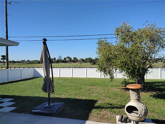 GREAT LOCATION & WELL-MAINTAINED! Backyard view of the golf course and parachuters across the canal. Freshly painted inside, new carpet in the master bedroom, newer vinyl planks 2019. Newer roof 2018, septic 2018, AC 2015, fridge & stove 2016, privacy fence 2016, hurricane panels 2020, all exterior doors and garage door are newer. 2 patios out back! Move right in & do the pretty things!