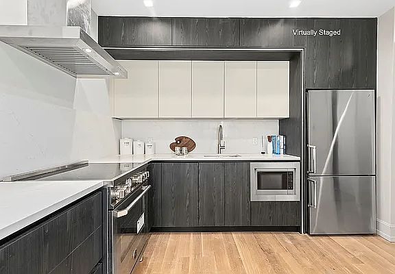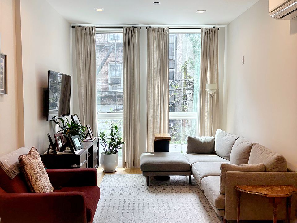 Recently built 2 bedroom 2 bath home just minutes from Prospect Park! The open living room boasts 9+ foot ceilings, a wall of south facing oversized Pella windows with plenty of sunlight, and beautiful oak hardwood flooring. The kitchen features quartz countertops, high end stainless appliances by Bertazzoni including range, refrigerator, built-in dishwasher, microwave and hood. Both the primary and second bedrooms feature custom designed closets. The primary spa bathroom boasts a freestanding deep soaking tub and separate glass enclosed shower, while the second bathroom features a modern shower with vanity and storage. The apartment features in-unit washer and dryer, and split heating/AC units can be individually controlled in each room. 246 Maple Street is conveniently located within blocks of three different subway stations and five train lines B,Q,S,4 and 5.