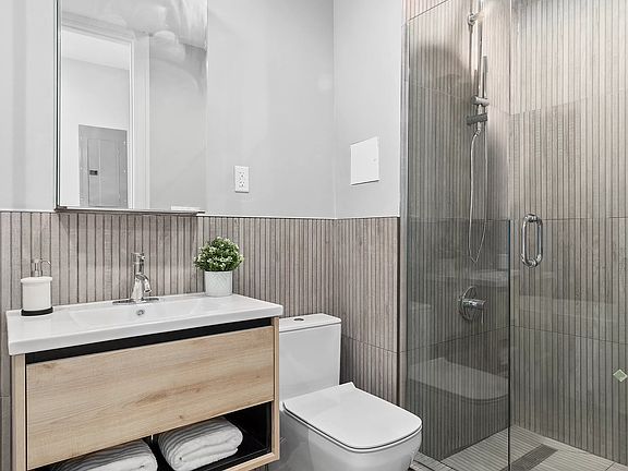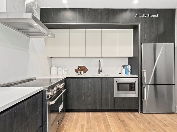 Welcome to 246 Maple Street, a newly built boutique condominium in the historic manor district of Prospect Lefferts Garden, Brooklyn. CLOSINGS PROJECTED TO COMMENCE IN JUNE. Residence 4B is a one-bedroom, one full bath home with private outdoor space and a deeded storage. The open living room boasts 9+ foot ceilings, a wall of floor-to-ceiling windows, and beautiful oak hardwood flooring all soaked in brilliant natural light through of oversized south facing Pella windows. The open custom chef's kitchen is complete with quartz countertops, high end stainless appliances by Bertazzoni including range, refrigerator, built-in dishwasher, microwave and hood. The bedroom is spacious with ample closet space. The bathroom boasts glass enclosed shower, custom wood vanity, tiled floors and walls. All residences have in-unit washer & dryer hookups, and multi-zone split heating and air conditioning. 246 Maple Street is conveniently located within blocks of three different subway stations and five train lines B,Q,S,4 and 5; minutes to restaurants and shops along Flatbush and blocks to Prospect Park. Images shown are a combination of model units and artist renderings. This is not an offering. The complete offering terms are in an offering plan available from the sponsor, file no. CD19-0343. Equal Housing Opportunity.