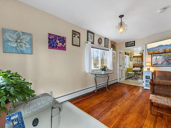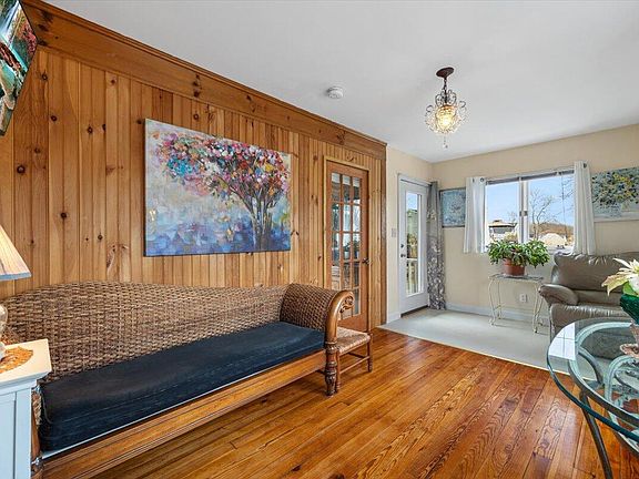 Begin your journey in this bright, charming, well maintained & updated home. Located on a no through street providing you with stunning gardens & great privacy to enjoy the beautiful outdoors. It is a nature lovers paradise with grape arbors, fruit trees, a fully fenced back yard, and with the large oversize deck makes this a great place for entertaining family & friends. First floor has living room with wood flooring, lots of windows and french doors that lead to the eat in, fully appliance kitchen. First floor bedroom with large window & wood flooring can be used for an in-home office, bedroom/den or craft room. Full bath with tub/shower. Second floor has spacious primary bedroom with palladium window, double closets and beamed cathedral ceiling. Additional skylit bedroom has a large closet & recessed lighting. Gorgeous wood flooring throughout most of the home. Full basement, newer natural gas heating, gas cooking, town sewer & water. Detached garage has an attached shed.