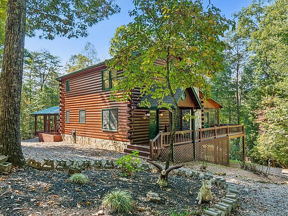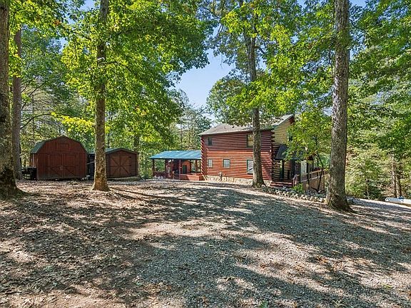 WELCOME to your hidden gem surrounded by nature all around. Nestled on almost 6 acres of gentle laying wooded lots. There's 2 separate parcels that convey giving you multiple Investment opportunities. Here you have room to ~GROW~ if you choose to build and resale, keep it for privacy, build a short term rental (income producing) or a loved one may need to build and live close by as life marches on. With some many options you're sure to find it in this home and land!! ~Log cabin exterior has been freshly stained, septic tank pumped and newer HVAC system. The covered SALT water heated pool is open year round for your enjoyment.. Spacious KITCHEN dining area. Bedroom on main opens onto wide covered, screened porch; adj. Bath w/ double-sink vanity. Generous loft/office/den on upper level w/ built-in cabinetry. Generous master w/ vaulted ceilings, opens onto screened sleeping porch, large BA, walk-in closet, linen closet. Terrace level full-fin. bsmt. w/ den, lg. laundry room, WORKSHOP/CRAFT RM., plus added BED & BATH. Circle drive to carport at rear of cabin; 12'x10' and 10'x16' out buildings. GREAT INVESTMENT PROPERTY! Even for a small mini farm. (pig and chickens)