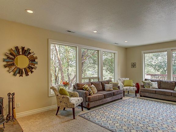 Travel along a paved country lane to this beautiful home, nestled on a wooded knoll in an area of upscale homes. Pavers grace the driveway apron'' and set the stage for the quality surprises within. Elevated ceilings and window walls throughout!The kitchen features slab granite counters, cherry wood cabinets, beautiful backsplash and tile floors + walk-in pantry; the dining room is conveniently adjacent. The highly crafted master suite on the main floor features a 5-piece bath incl. a jetted soaking tub with wooded views. Lower level includes large game room, and two bedrooms & bath. The garage is extra deep, with a generous shop or work space. Wildlife, including a family of deer and a few younger bucks, visit often! Enjoy fruit trees, including apple and pear, as well as stone raised bed gardens for drip line feed vegetable gardening, all within the fenced, protected areas of this beautiful property. Abundant flowering plants attract birds, hummingbirds, and butterflies! Enjoy!